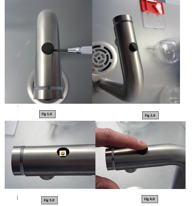 - Slot the new button into the hole by pressing firmly around the edges until the lip is secure in the hole. Fig 3 & Fig 4