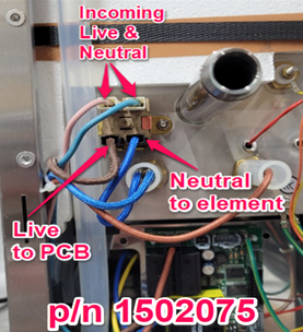 The new overheat (1502075) will be fitted to the incoming live and neutral of the flex and when it trips it will cut the power to the boiler, not just the element like the older version (1502087) . This will mean than when it trips all the lights on display will go out and the error for not heating (4 flashes) will not be displayed.